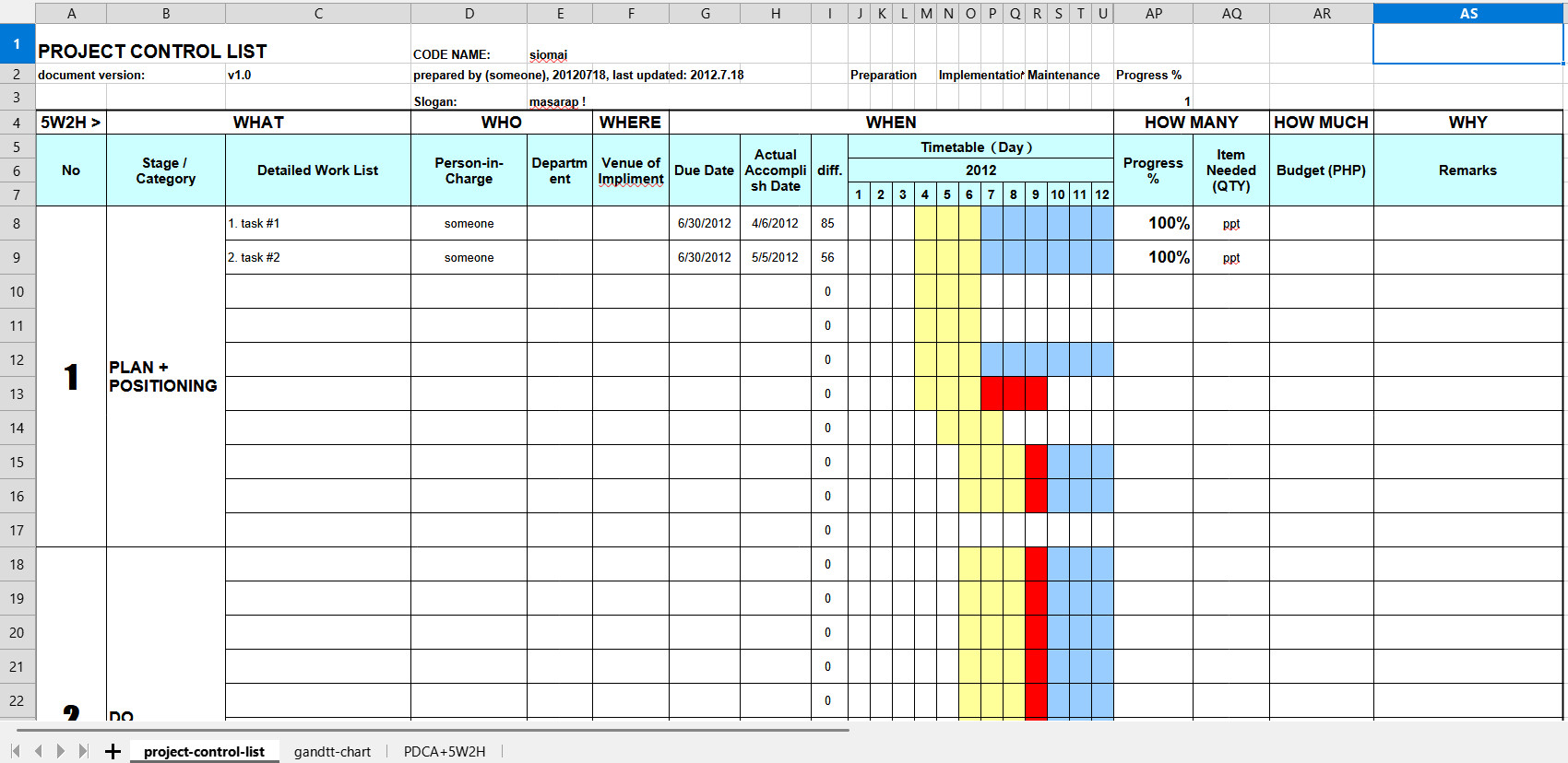 hash tags: #project management, #PDCA, #5W2H, #business, #project control list, #freeware