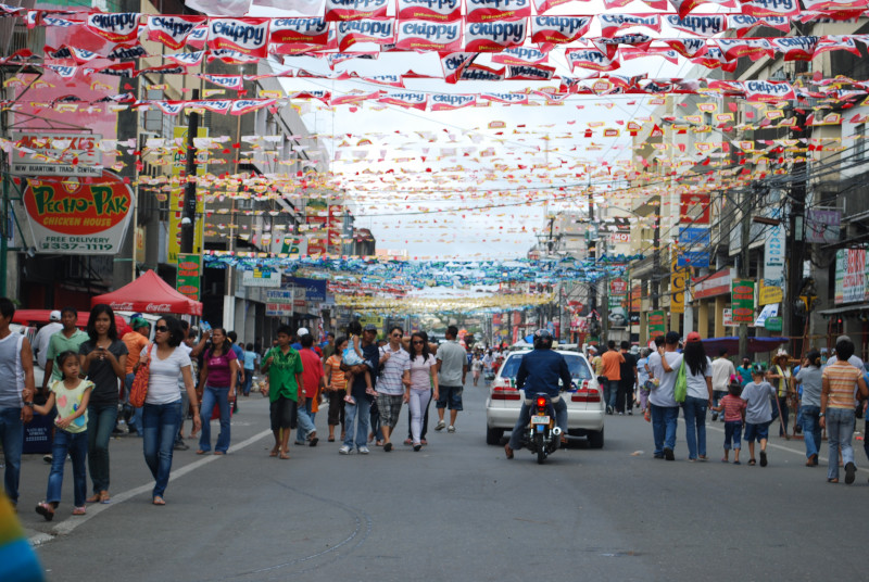 Bannered street in Iloilo City during Dinagyang Festival.