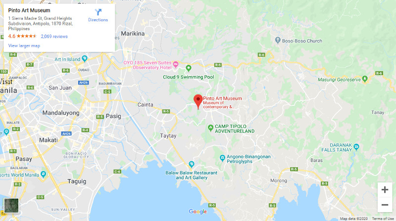 Pintô Art Museum is a contemporary museum and an exhibition space located in Antipolo City of Rizal Province. The museum was founded in 2010 by Dr. Joven Cuanang to publicly exhibit the art collection of Filipino neurologist and patron of the arts. The museum was named as pintô which means "door" in Filipino language. Its principle is to play a diplomatic role of art in bridging distinctive nationalities, worldviews, and communities.