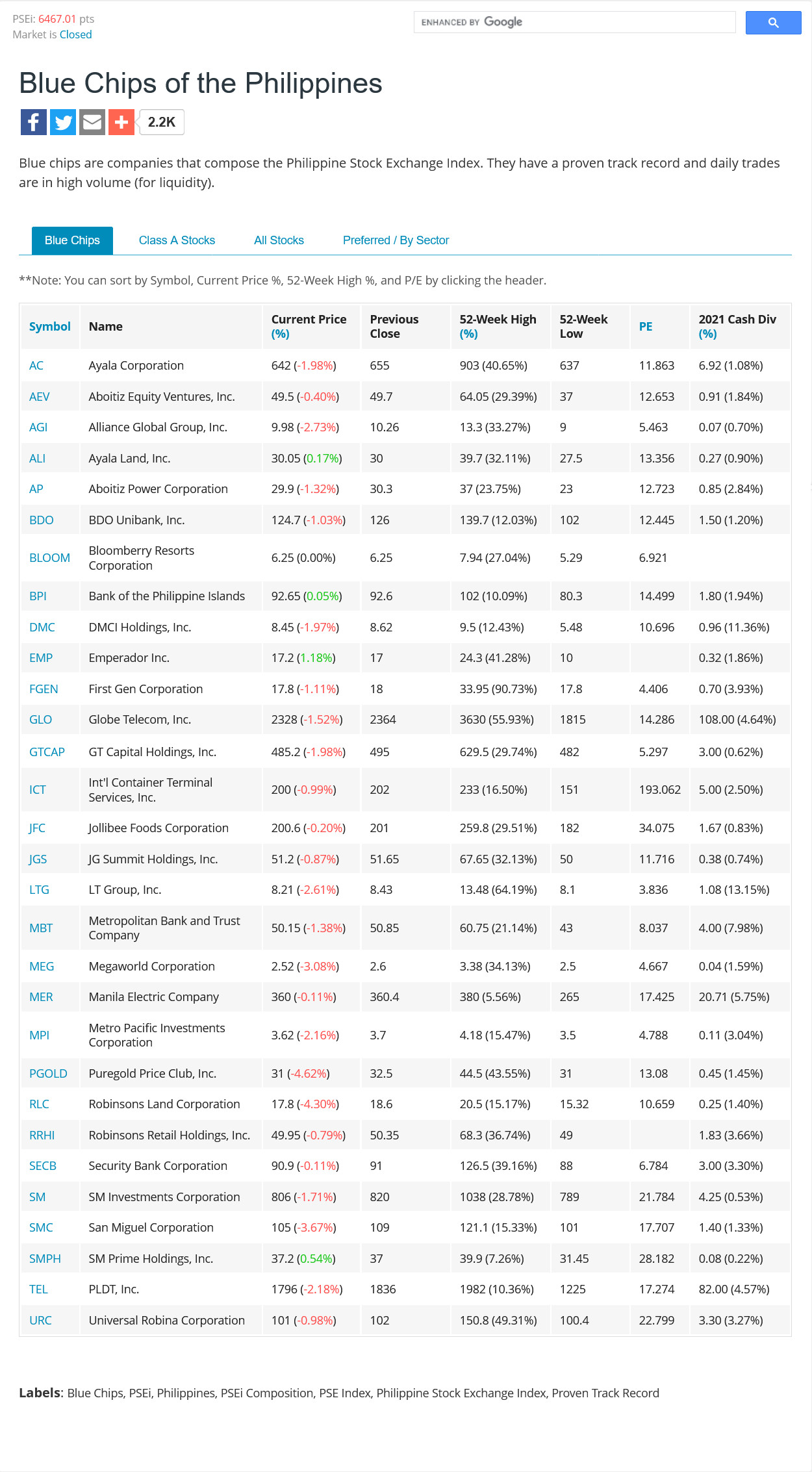 You can check those blue chips stocks in the Philippines here (as of 2022-06-13) :