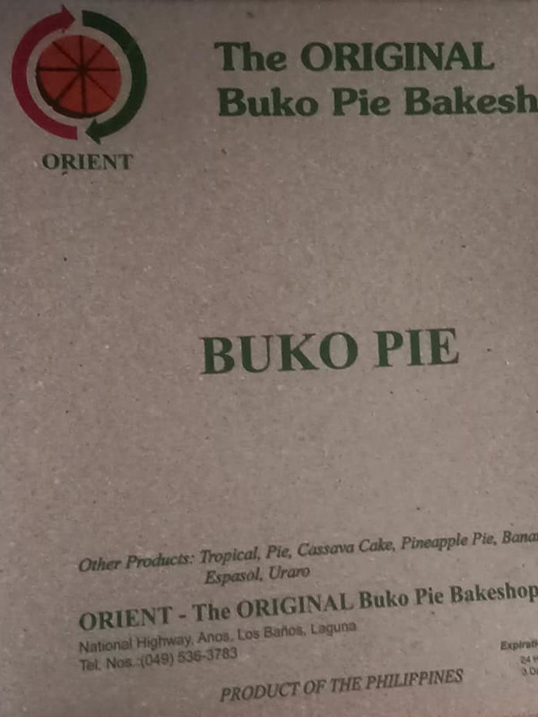 * Please recognize the brand "ORIENT" because there are so many buko pie bakeshops around these corners in Los Banos.