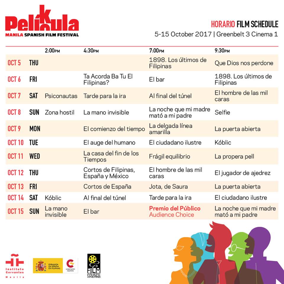 The film schedule of PELíCULA 2017 is listed under at issuu. All films are subtitled. PHP 100 each film. Share it with your friends !