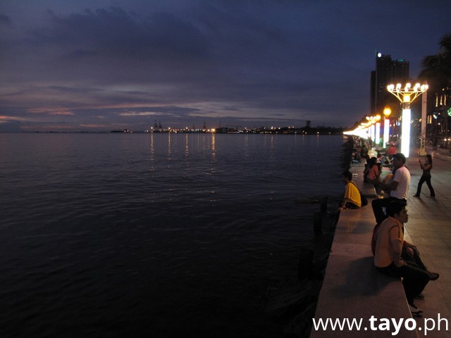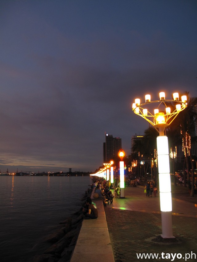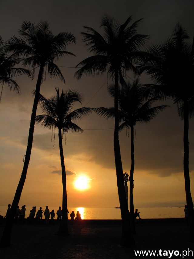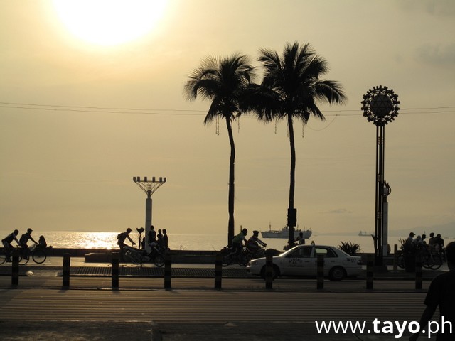 * Manila Bay, Sunset, plam tree, bicycle, people.