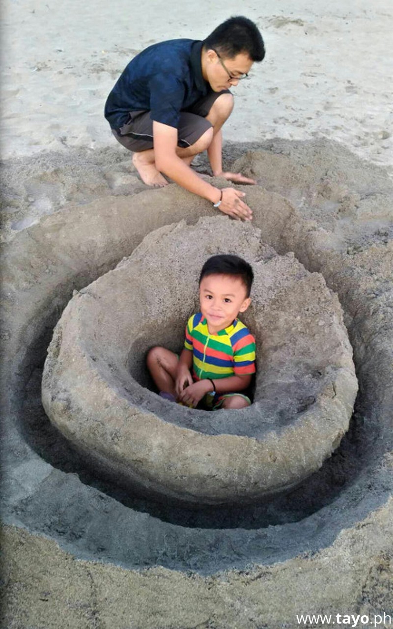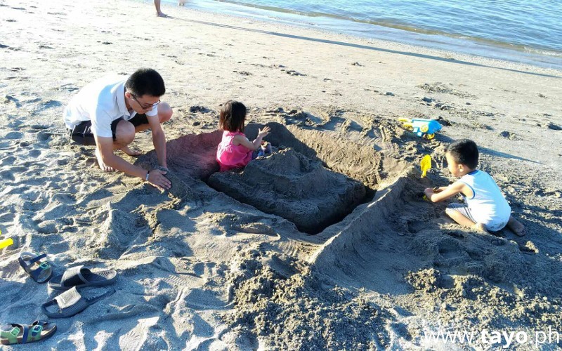 And the father his daughter joins to play the sand too. And then her wife took this picture. ha ha.
