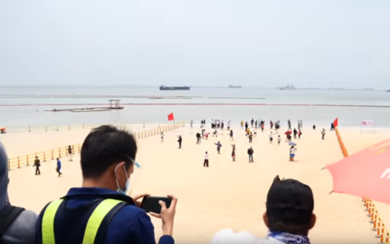 It's amazing because people never see this artificial beach to be carried out here before.