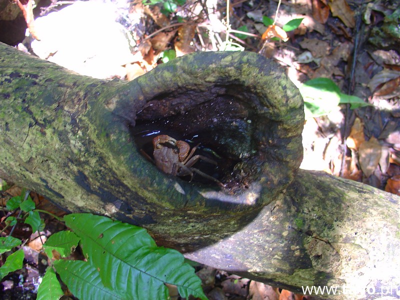 A crab inside the tree hole pool.