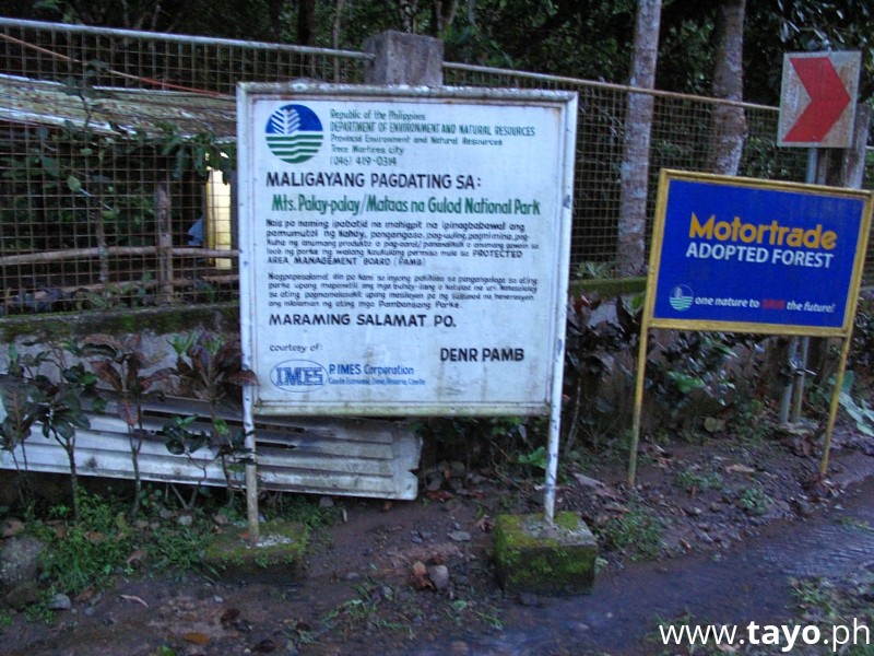 The Pico de Loro Trial is starting from DENR Mount Palay Field Office. And it's about 3 hours to the summit of Pico de Loro by foot.