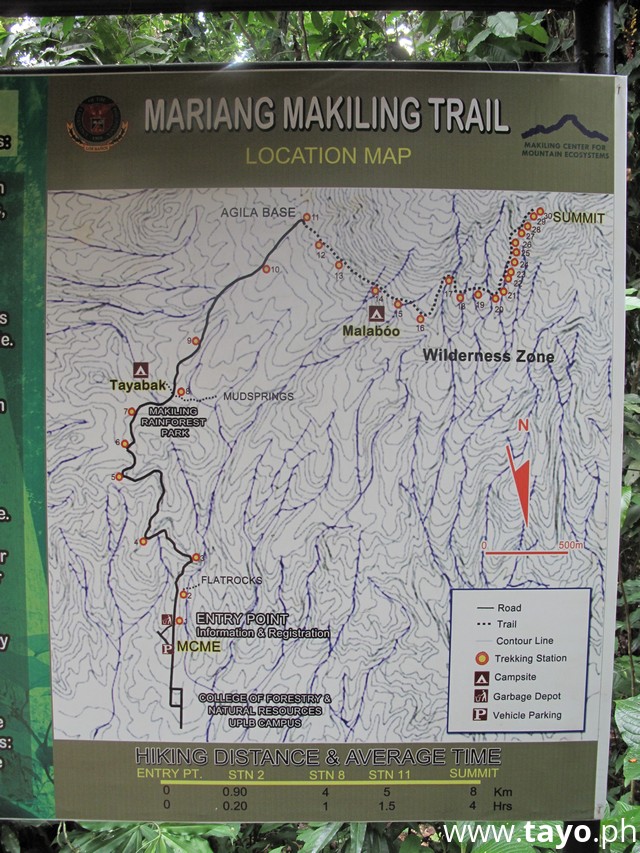 A trekking map to the summit of Mt. Makiling.